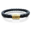 Schwarzes Lederarmband aus einer dicken Kordel aus Faux Leder. Das vegane Lederarmband besitzt einen silber- bzw. goldfarbenen Strass Magnetverschluss zum einfachen Verschliessen des Armbandes.