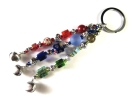 Filigraner, aber stabiler Schlüsselanhänger Comet, mit drei flexiblen Strängen in rot, blau und grün, mit silberfarben Herzen, Millefiori- und Glas. An jedem Strang hängt ein hell klingendes Glöckchen, äusserst praktisch bei der Schlüsselsuche in der Tasche !