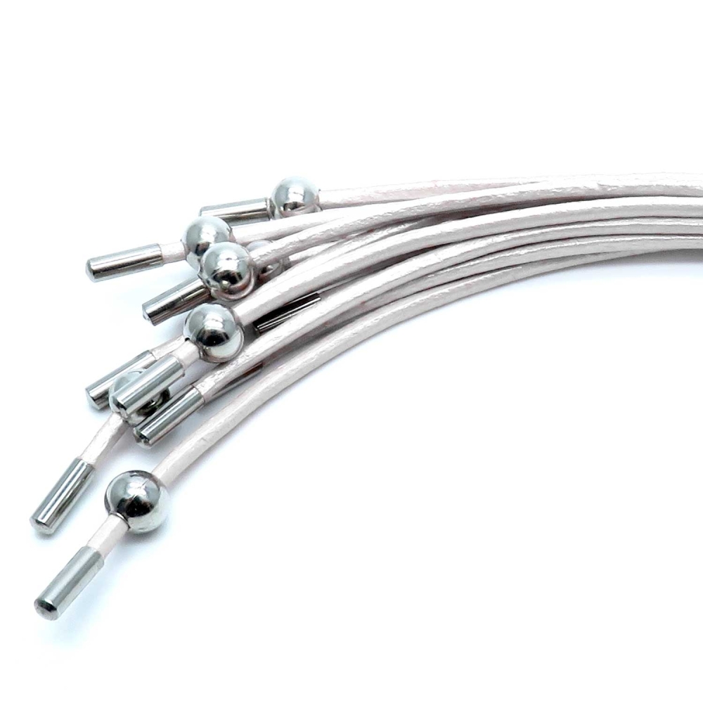 Quasten Schlüsselanhänger White Pearl mit Edelstahlperlen und Leder. Die Perlen sind auf dem Leder nicht fixiert, bewegen sich frei.